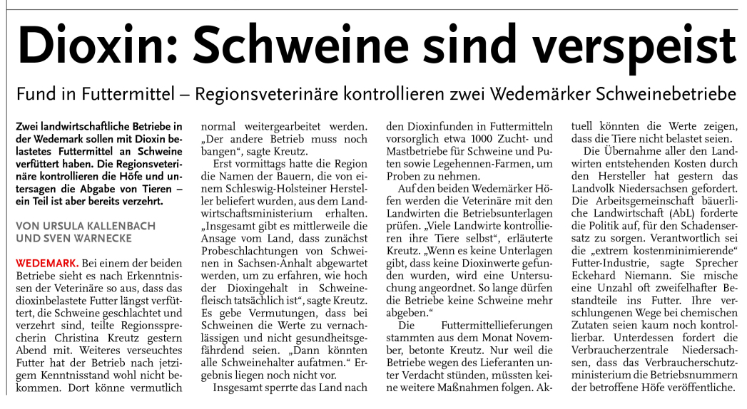 HAZ NHZ 05.01.2011 DIOXIN DIE SCHWEINE SIND VERSPEIST