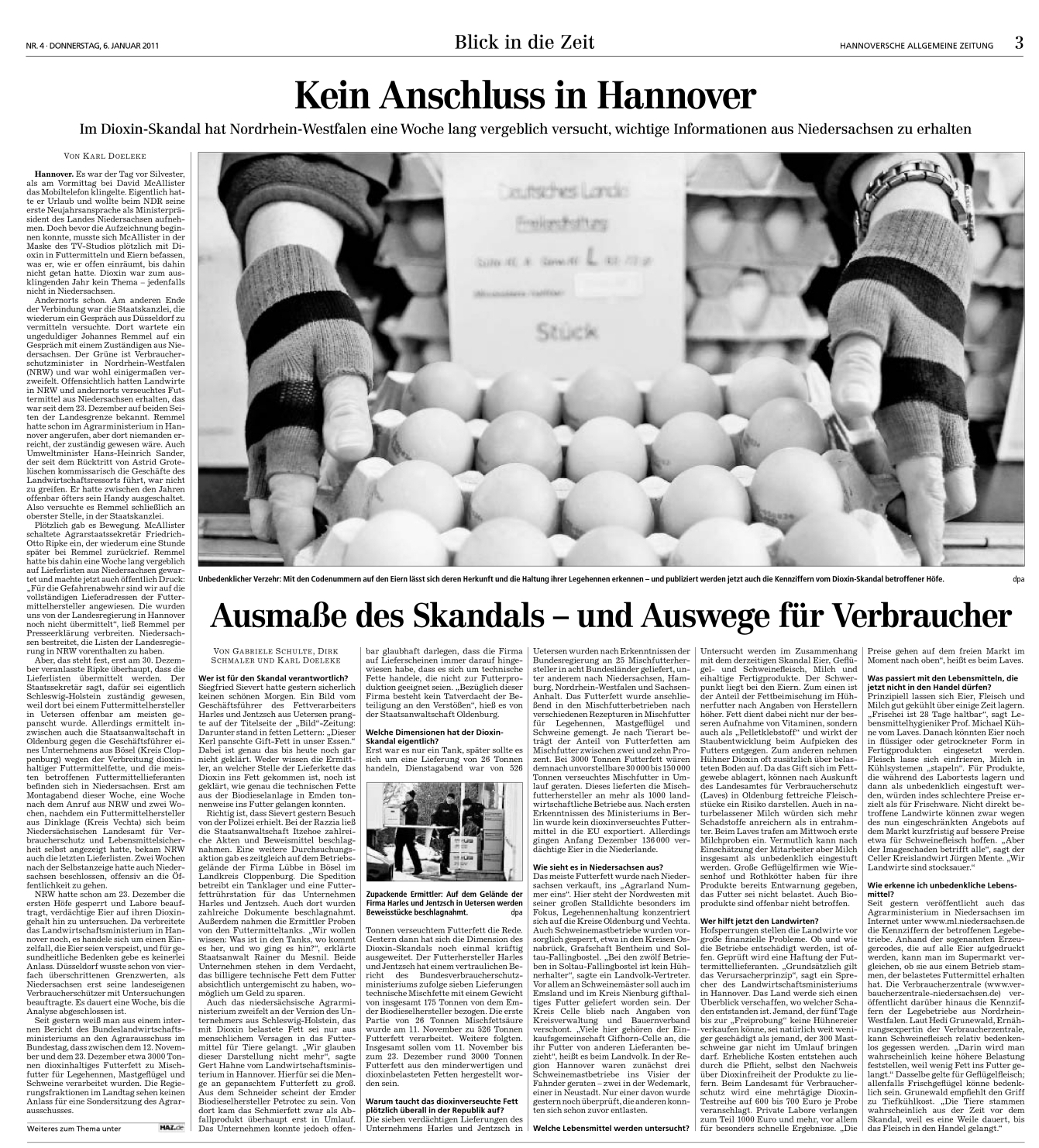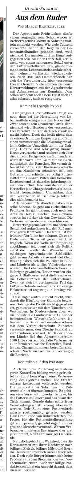 HAZ KOMMENTAR 06.01.2011 DIOXIN-SKANDAL AUS DEM RUDER