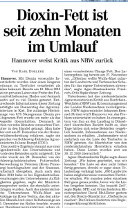 HAZ 07.01.2011 DIOXIN-FETT IST SEIT ZEHN MONATEN IM UMLAUF