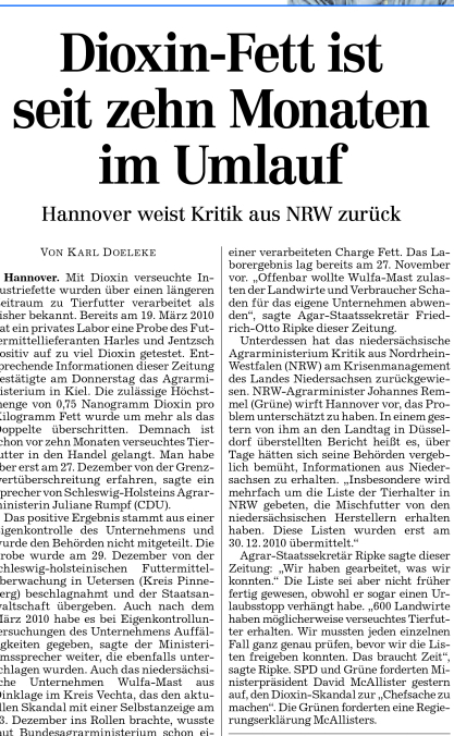 HAZ 07.01.2011 DIOXIN-FETT IST SEIT ZEHN MONATEN IM UMLAUF