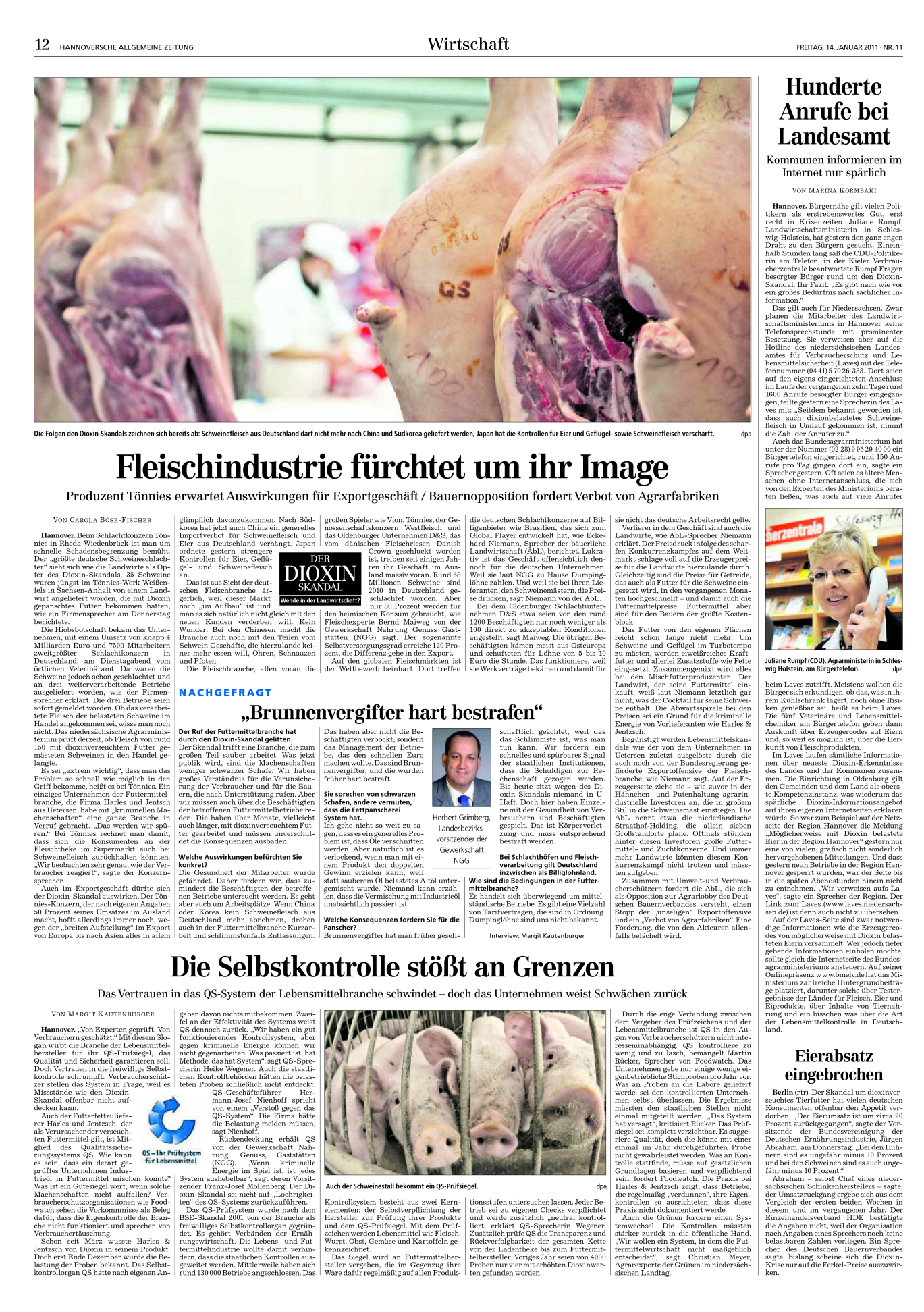 HAZ 14.01.2011 FLEISCHINDUSTRIE FÜRCHTET UM IHR IMAGE