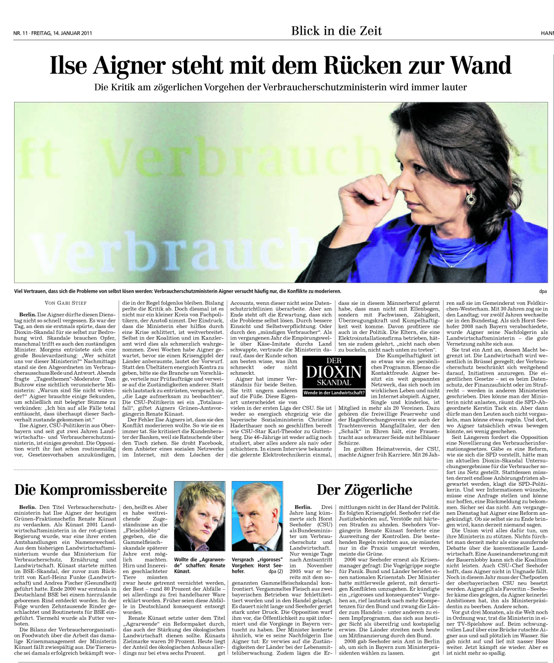 HAZ 14.01.2011 ILSE AIGNER STEHT MIT DEM RÜCKEN ZUR WAND