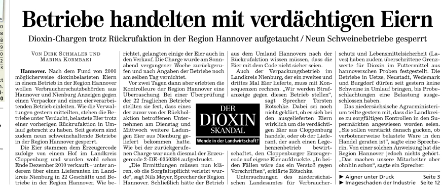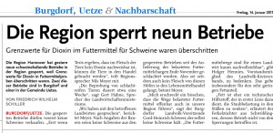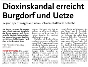 HAZ BA 14.01.2011 DIOXINSKANDAL ERREICHT BURGDORF UND UETZE
