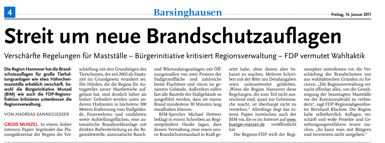 HAZ CZ 14.01.2011 STREIT UM NEUE BRANDSCHUTZAUFLAGEN