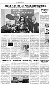 HAZ 17.01.2011 AIGNER FÜHLT SICH VON NIEDERSACHSEN GELINKT