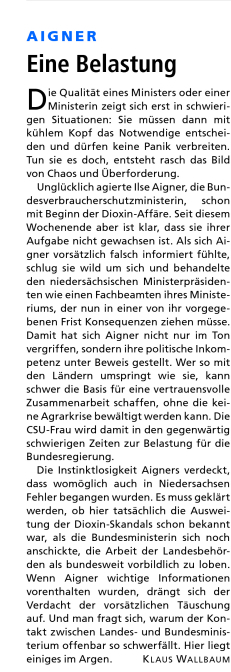 HAZ KOMMENTAR 17.01.2011 AIGNER - EINE BELASTUNG