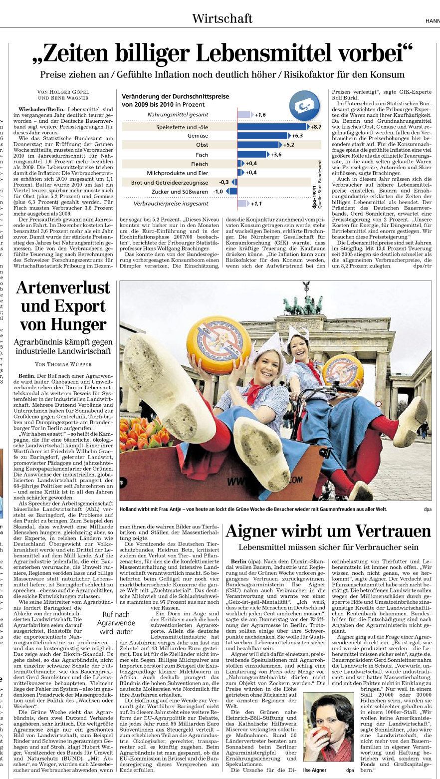 HAZ 21.01.2011 "ZEITEN BILLIGER LEBENSMITTEL VORBEI"