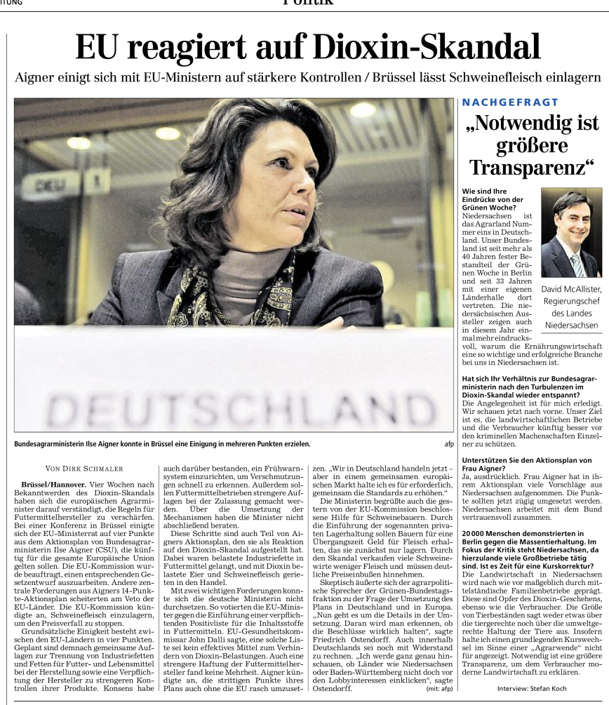 HAZ 25.01.2011 EU REAGIERT AUF DIOXIN-SKANDAL