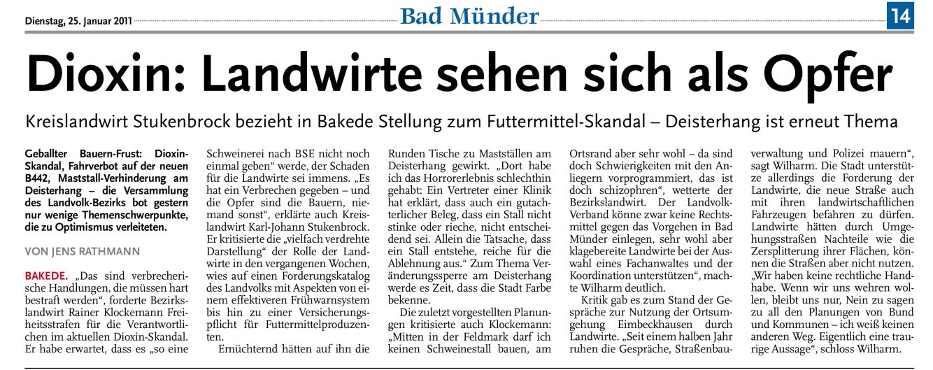 HAZ DA 25.01.2011 DIOXIN LANDWIRTE SEHEN SICH ALS OPFER