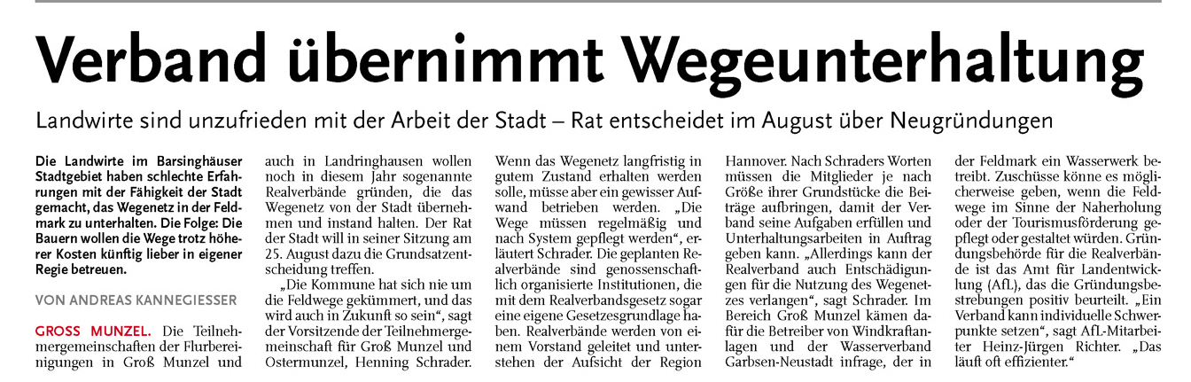 HAZ CZ 18.07.2011 VERBAND ÜBERNIMMT WEGEUNTERHALTUNG