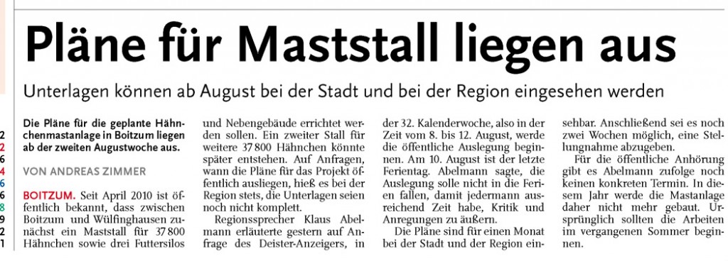 HAZ DA 17.06.2011 PLÄNE FÜR MASTSTALL LIEGEN AUS