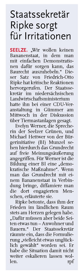 HAZ LZS 25.06.2011 STAATSSEKRETÄR RIPKE SORGT FÜR IRRITATIONEN