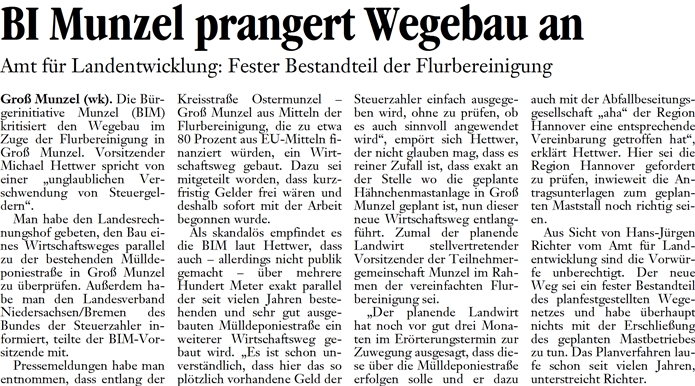 DLZ 28.06.2011 BI MUNZEL PRANGERT WEGEBAU AN