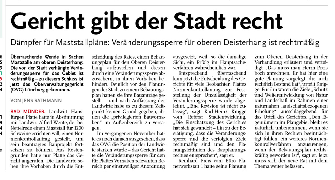 HAZ DA 08.11.2011 GERICHT GIBT DER STADT RECHT