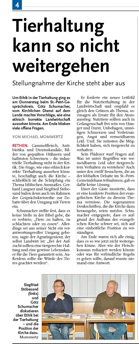 HAZ LN 26.11.2011 TIERHALTUNG KANN SO NICHT WEITERGEHEN
