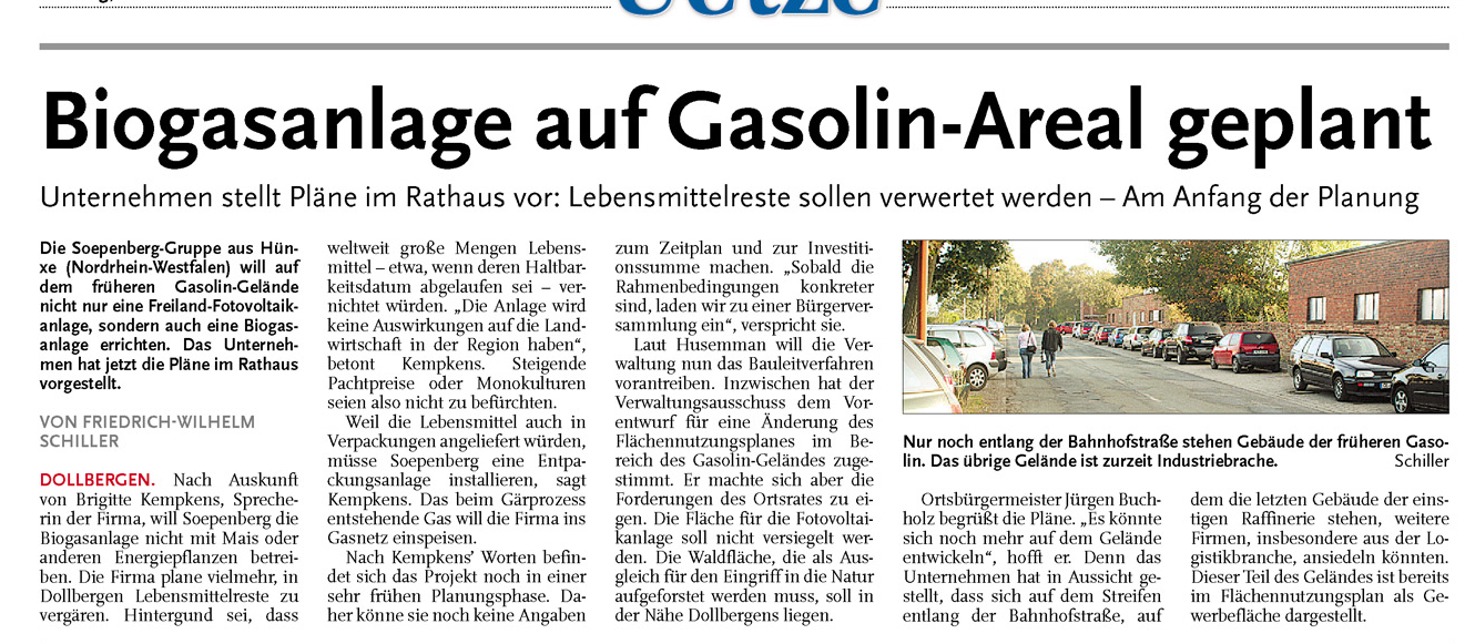 HAZ AB 10.10.2011 BIOGASANLAGE AUF GASOLIN-AREAL GEPLANT