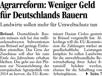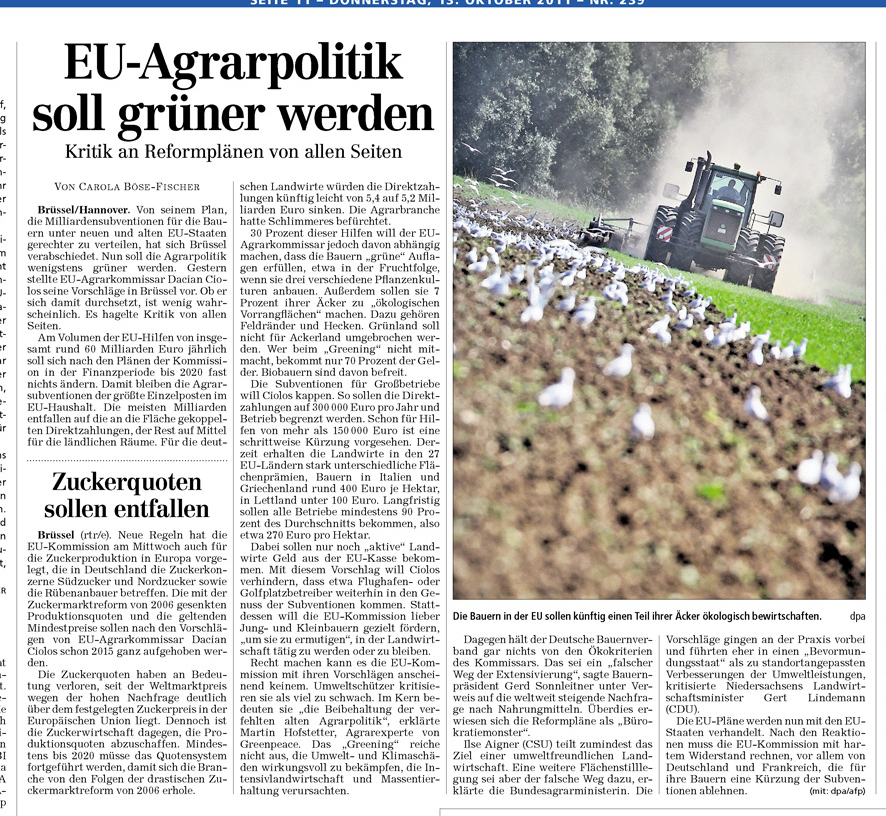 DLZ 13.10.2011 AGRARREFORM: WENIGER GELD FÜR DEUTSCHLANDS BAUERN