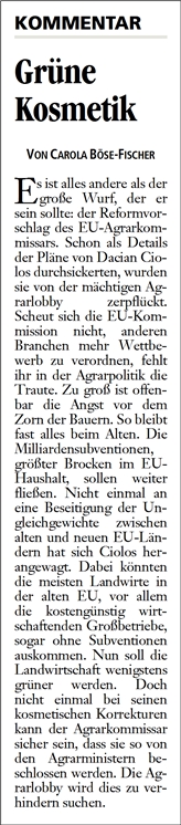 DLZ 13.10.2011 KOMMENTAR: "GRÜNE KOSMETIK"