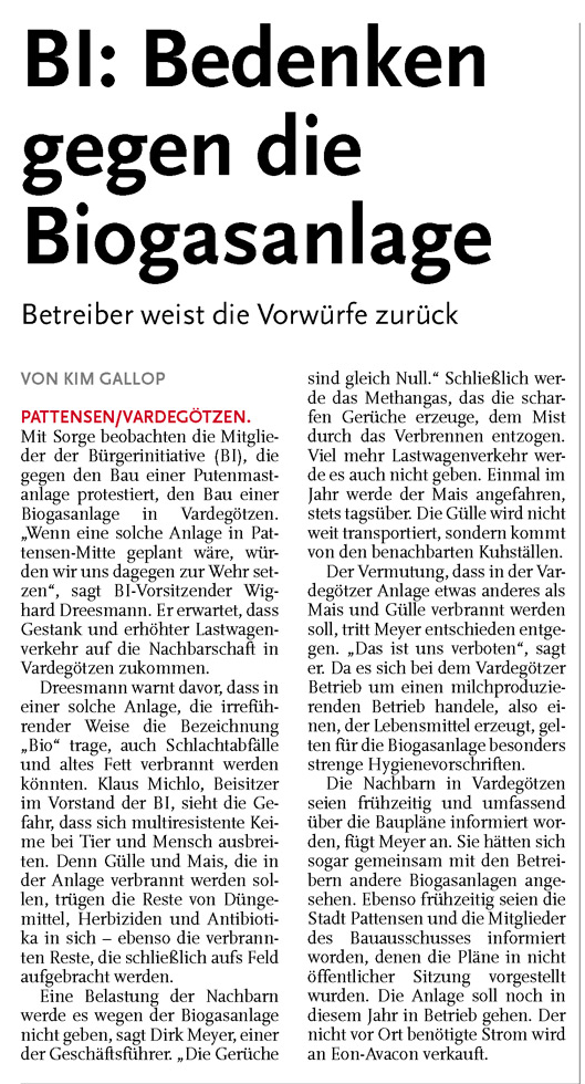 HAZ LN 26.10.2011 BI BEDENKEN GEGEN DIE BIOGASANLAGE
