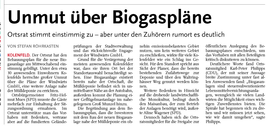 HAZ LZW 02.09.2011 UNMUT ÜBER BIOGASANLAGE