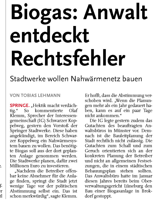 HAZ DA 03.09.2011 BIOGAS ANWALT ENTDECKT RECHTSFEHLER