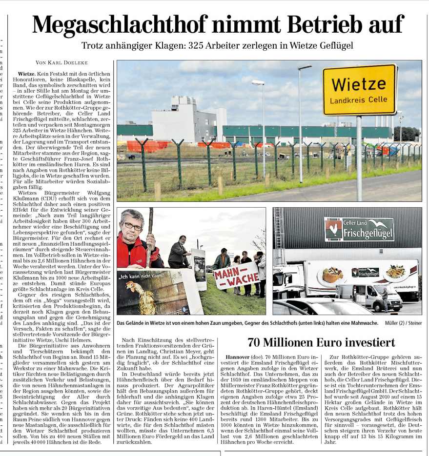 HAZ 06.09.2011 MEGASCHLACHTHOF NIMMT BETRIEB AUF