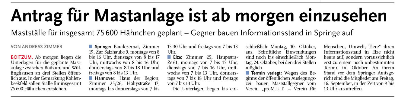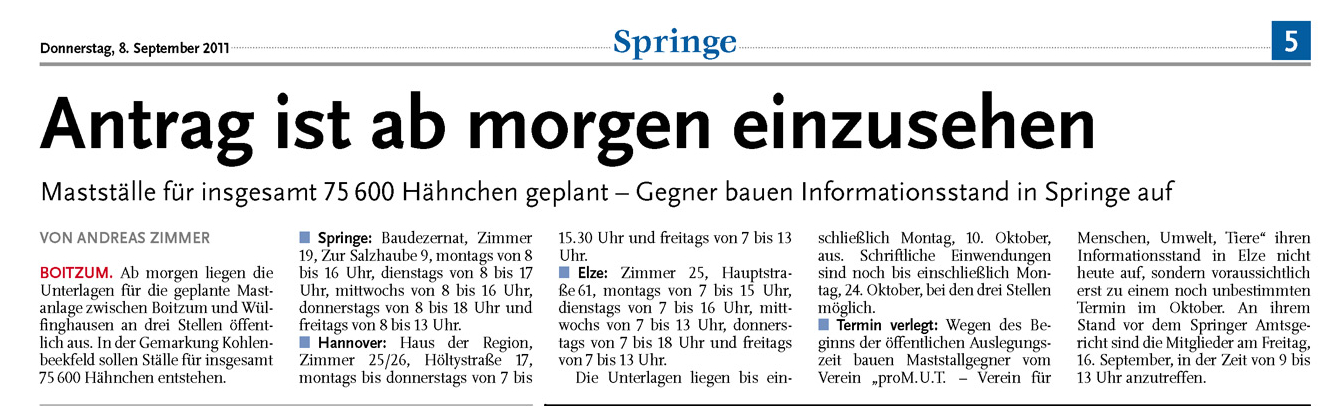 HAZ LN 08.09.2011 ANTRAG FÜR MASTANLAGE IST AB MORGEN EINSEHBAR