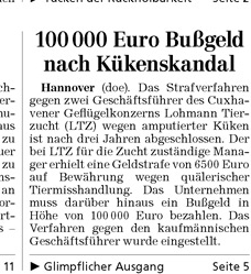 HAZ 14.09.2011 100000 EURO BUSSGELD NACH KÜKENSKANDAL