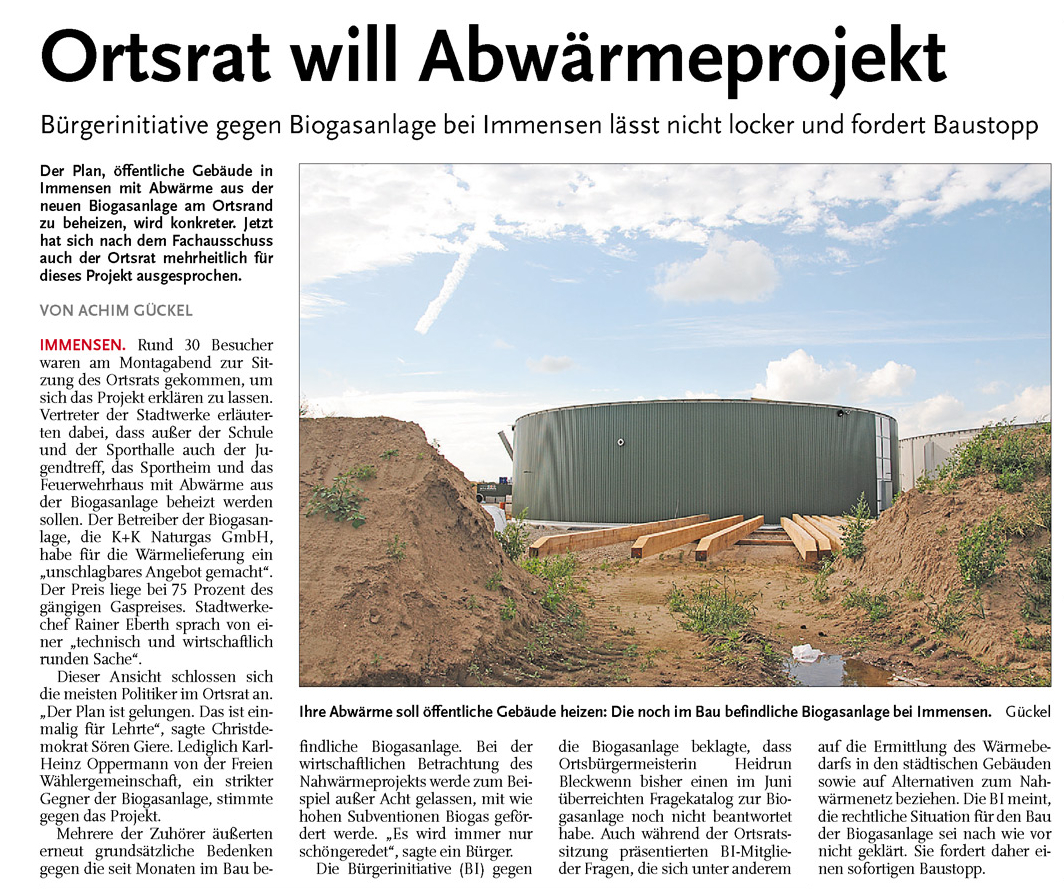HAZ AB 14.09.2011 ORTSRAT WILL ABWÄRMEPROJEKT