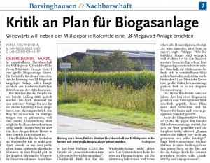 HAZ CZ 17.09.2011 KRITIK AN PLAN FÜR BIOGASANLAGE