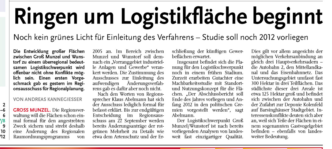 HAZ CZ 21.09.2011 RINGEN UM LOGISTIKFLÄCHE BEGINNT