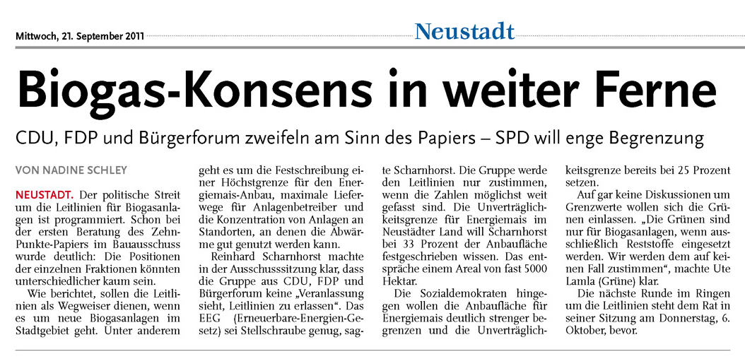 HAZ LZW 21.09.2011 BIOGAS-KONSENS IN WEITER FERNE