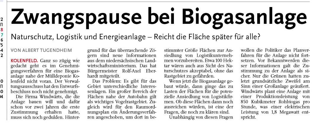 HAZ LZW 22.09.2011 ZWANGSPAUSE BEI BIOGASANLAGE
