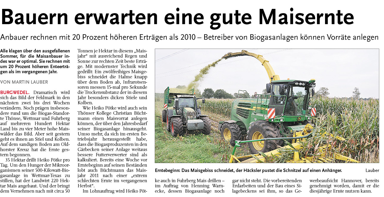 HAZ NHA 22.09.2011 BAUERN ERWARTEN EINE GUTE MAISERNTE