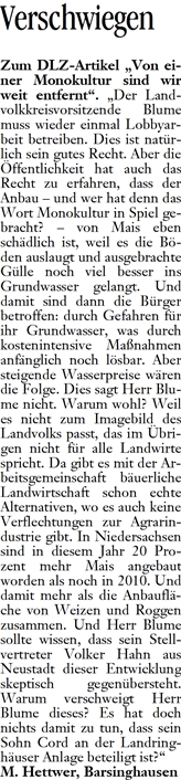 DLZ 29.09.2011 LESERBRIEF MICHAEL HETTWER, BARSINGHAUSEN