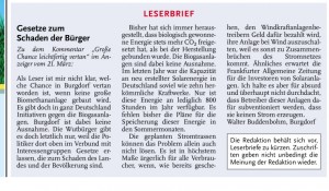 HAZ AB 26.03.2011 LESERBRIEF WALTER BUDDENBOHM, BURGDORF