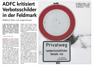 HAZ CZ 15.12.2012 ADFC KRITISIERT VERBOTSSCHILDER IN DER FELDMARK