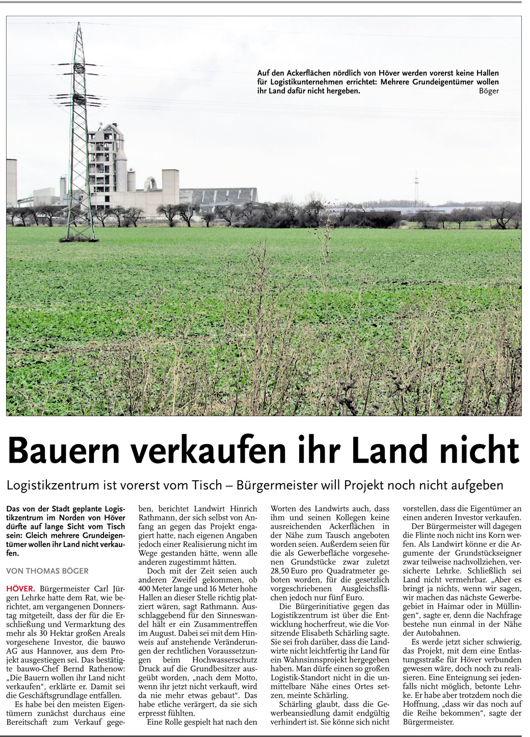HAZ AB 17.12.2012 BAUERN VERKAUFEN IHR LAND NICHT