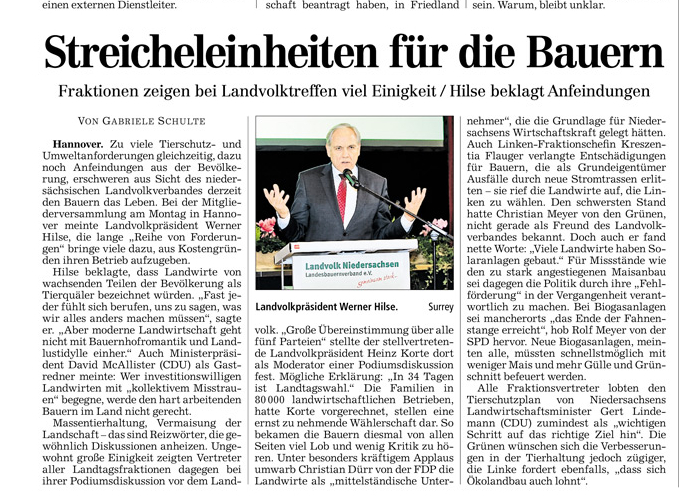 HAZ 18.12.2012 STREICHELEINHEITEN FÜR DIE BAUERN