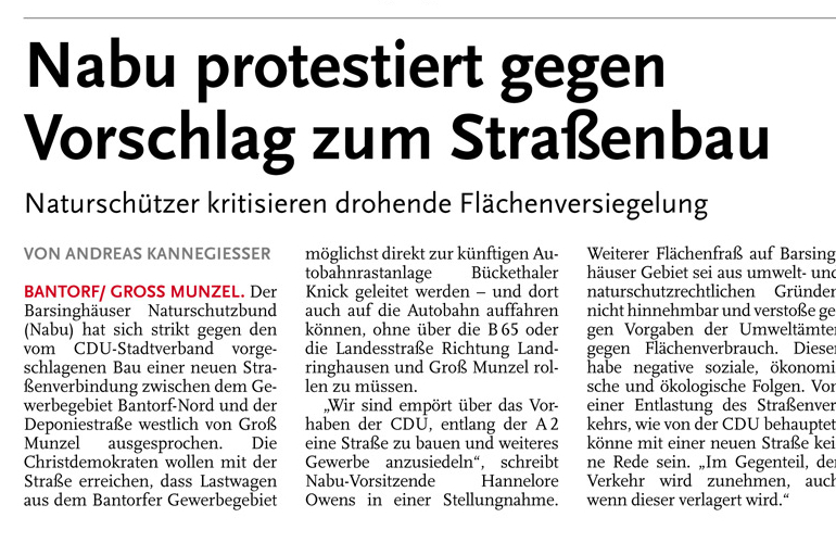 HAZ CZ 18.12.2012 NABU PROTESTIERT GEGEN VORSCHLAG ZUM STRAßENBAU