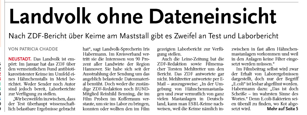 HAZ LZS 11.02.2012 LANDVOLK BLEIBT OHNE DATENEINSICHT