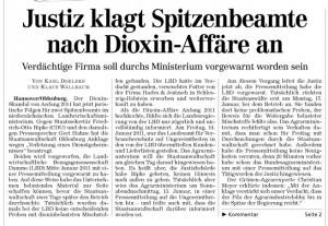 HAZ TITELSEITE 16.02.2012 JUSTIZ KLAGT SPITZENBEAMTE NACH DIOXIN-AFFÄRE AN