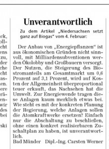 HAZ 16.02.2012 LESERBRIEF CARSTEN WERNER BAD MÜNDER