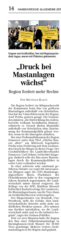 HAZ 23.02.2012 "DRUCK AUF MASTANLAGEN WÄCHST"