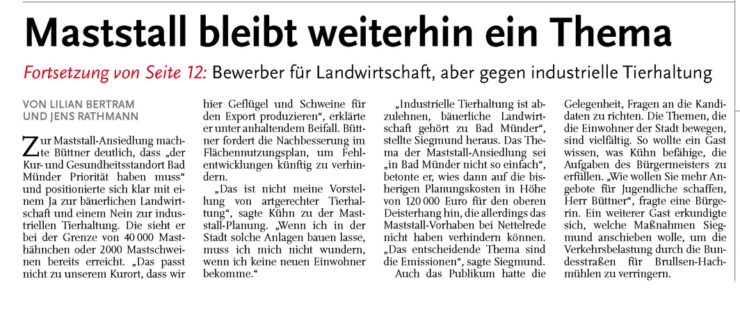 HAZ DA 23.02.2012 MASTSTALL BLEIBT WEITERHIN EIN THEMA