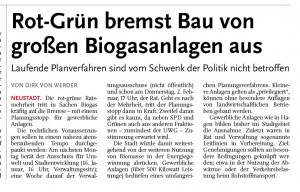 HAZ LZS 10.01.2012 ROT-GRÜN BREMST BAU VON GROSSEN BIOGASANLAGEN AUS