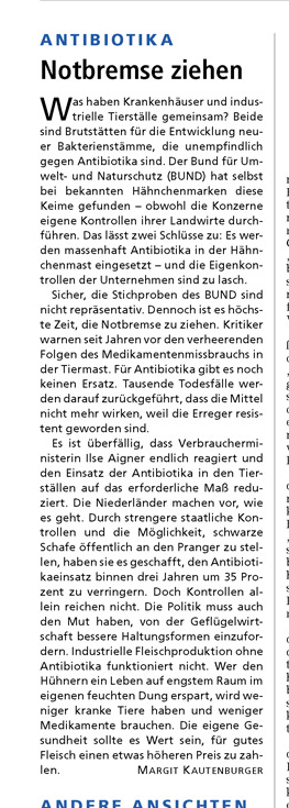 HAZ 10.01.2012 KOMMENTAR: ANTIBIOTIKA - "NOTBREMSE ZIEHEN"