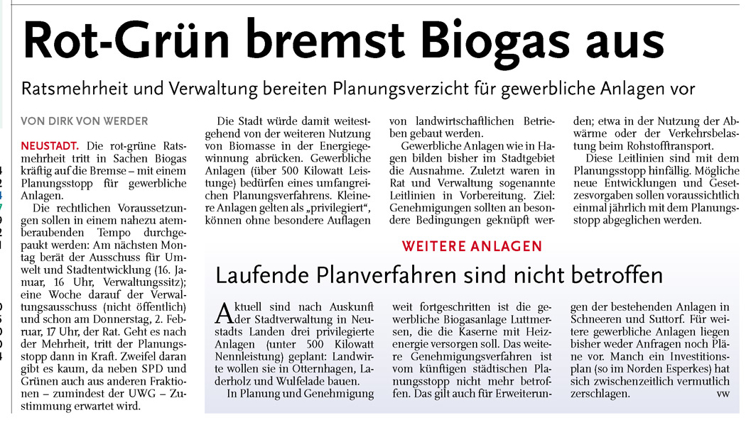 HAZ LZW 10.01.2012 ROT-GRÜN BREMST BIOGAS AUS