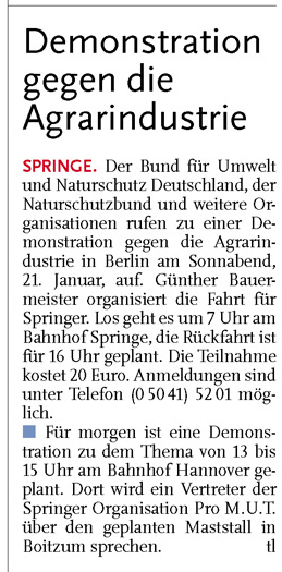 HAZ DA 17.01.2012 DEMONSTRATION GEGEN DIE AGRARINDUSTRIE