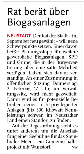 HAZ LZS 31.01.2012 RAT BERÄT ÜBER BIOGASANLAGEN